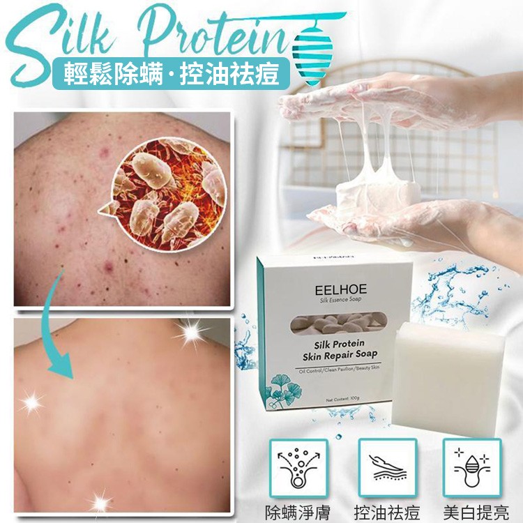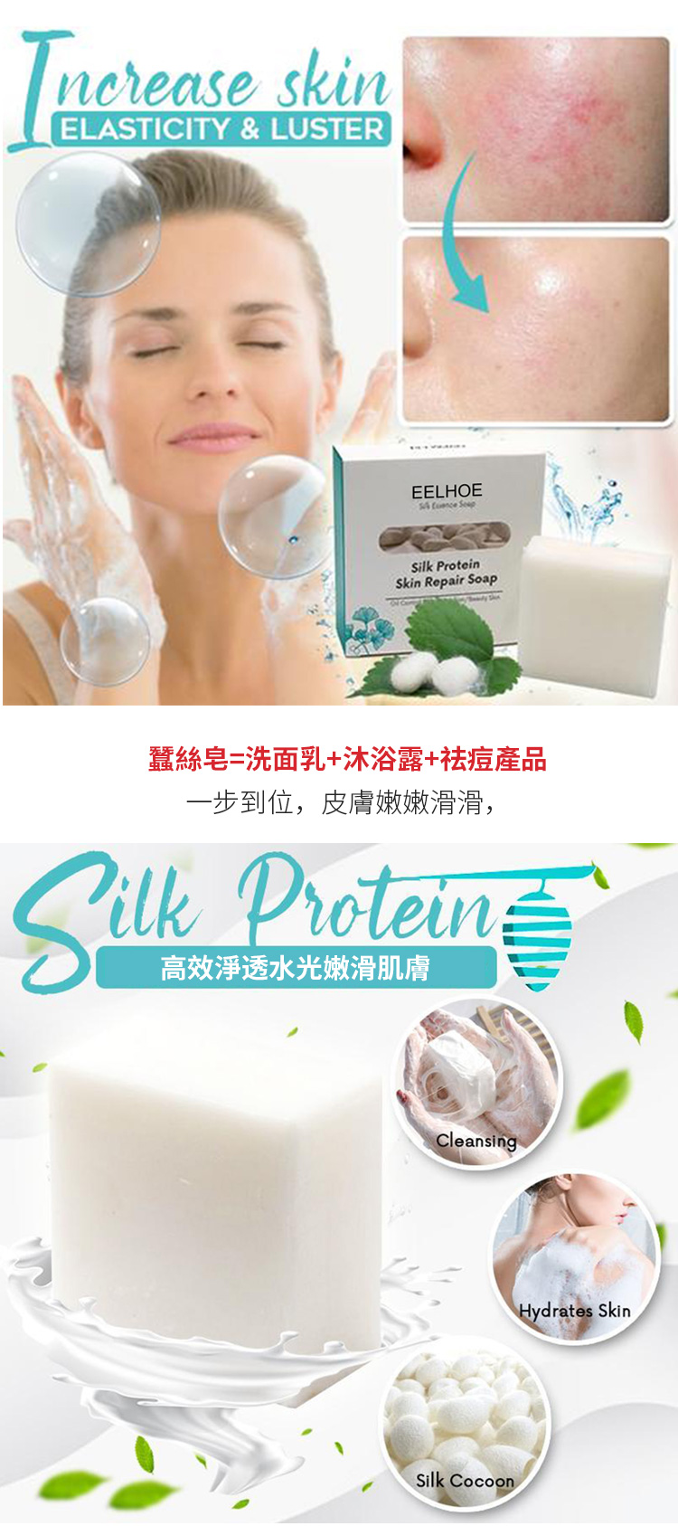 EELHOE蠶絲蛋白面膜皂精選山羊奶、海鹽、植物除蟎劑、胺基酸以及特別添加蠶絲蛋白萃取精華的蛋白皂、海鹽皂、除螨皂、祛痘皂等產品推薦,加上獨特技術的結合,蠶絲皂對皮膚有保濕、美白、抗老化、祛痘、除蟎、殺菌、控油的面膜皂。